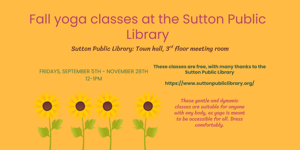 Return to yourself with a guided practice of asana (postures), dhyana (meditation), pranayama (breath control), and more. These classes are suitable for anyone with any body, as yoga is meant to be accessible for all. Dress comfortably and bring a mat if you have one.